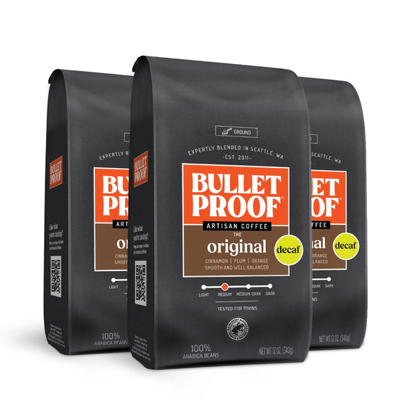 https://shop.bulletproof.com/products/3-pack-the-original-ground-decaf1320955412603Bulletproof Original Decaf Ground Coffee 3 pack42.73https://shop.bulletproof.com/cdn/shop/files/coffee-ground-decaf-3pack-pdp-card1.jpg?v=1748848795&width=1024https://shop.bulletproof.com/cdn/shop/files/coffee-ground-decaf-3pack-pdp-card1.jpg?v=1748848795&width=1024USDInStockCoffeeAll ProductsCoffeeEverything Excluding VibeGround CoffeeMedium Roast CoffeePrice Update Products Sep 2025Product Group - Ground CoffeeSave With BundlesSubscribe & Save