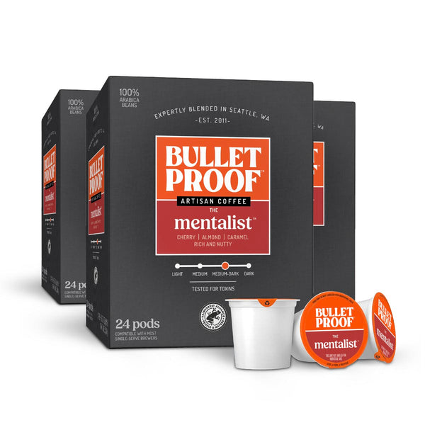 https://shop.bulletproof.com/products/the-mentalist-coffee-pods-24ct-3-pack1687764369443The Mentalist Coffee Pods 3 pack78.73https://shop.bulletproof.com/cdn/shop/files/coffee-pods-mentalist-3pack-pdp-card1.jpg?v=1748848792&width=1024https://shop.bulletproof.com/cdn/shop/files/coffee-pods-mentalist-3pack-pdp-card1.jpg?v=1748848792&width=1024USDInStockCoffeeAll ProductsCoffeeCoffee PodsEverything Excluding VibeMedium-Dark Roast CoffeePrice Update Products Sep 2025Product Group - Coffee PodsSave With BundlesSubscribe & Save